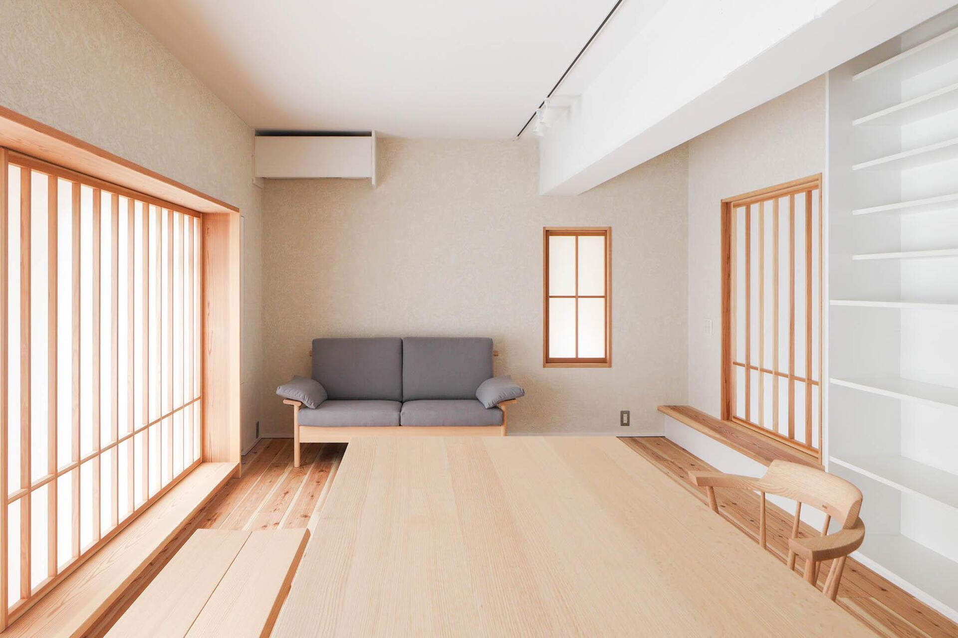 Large shoji screen windows frame views of the greenery, and a bay window in the Japanese-style room provides a comfortable reading nook overlooking the forest. The building stands on the edge of a satoyama mountain area, offering a refreshing natural environment just 15 minutes walk from Busshi Station on the Seibu Ikebukuro Line.